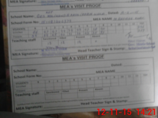 | Attendance Register | Head Teacher | MEA with School | Visit Proof |