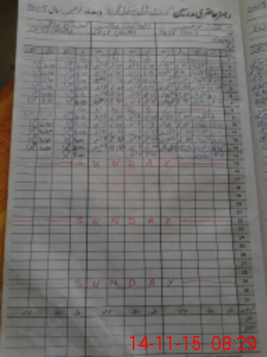 | CNIC | Full Name | Designation | R/C | Absence During Last Calender Month |