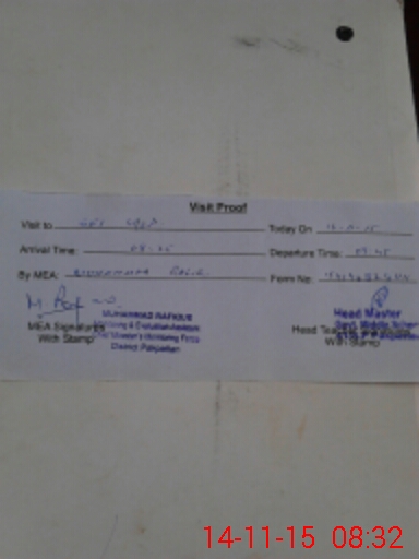 | Attendance Register | Head Teacher | MEA with School | Visit Proof |