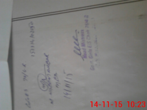 | Monitoring Date: 14-11-2015 | Start Time: 14-11-2015 09:48 AM | End Time: 14-11-2015 10:23 AM | Name of MEA: Mu**** Na**** Ak**** BN**** 31 | |