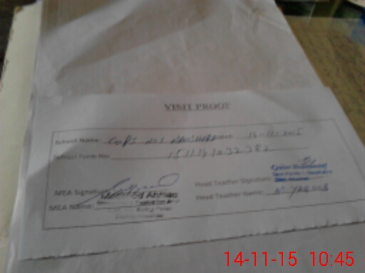 | Attendance Register | Head Teacher | MEA with School | Visit Proof |