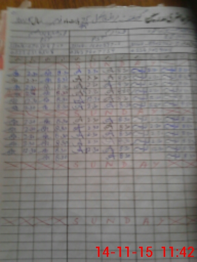 | CNIC | Full Name | Designation | R/C | Absence During Last Calender Month |