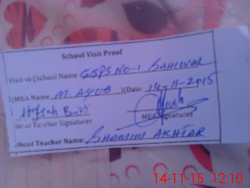 | EMIS Code: 38450446 | Name of School: GGPS NO.1 SAHIWAL | |||