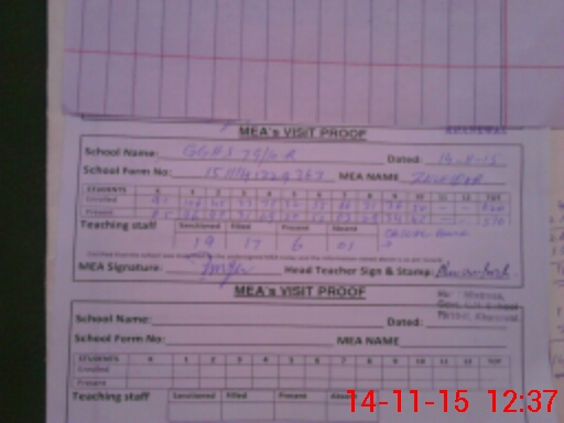 | Attendance Register | Head Teacher | MEA with School | Visit Proof |