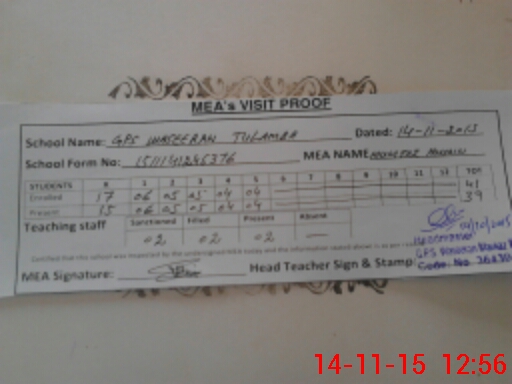 | EMIS Code: 36430477 | Name of School: GPS WASEERAN P/O TULAMBA | |||