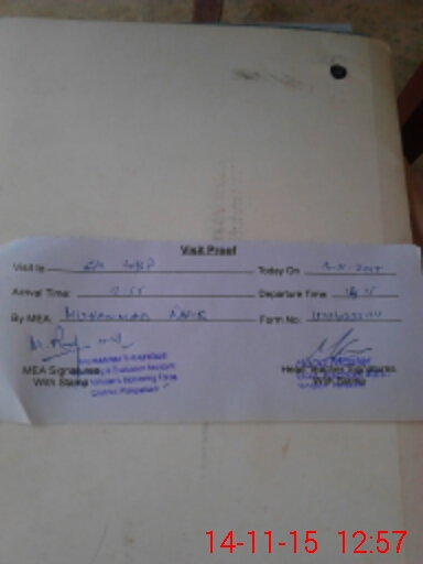 | School Visited by School Health & Nutrition Supervisor (No. of Visits) | 1 | Name1: | M Shoaib Abuzer | Name2: | |
