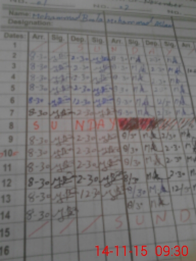 | CNIC | Full Name | Designation | R/C | Absence During Last Calender Month |