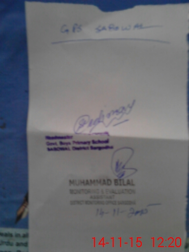 | District: SARGODHA | Tehsil: SHAHPUR | Markaz: SHAHPUR CITY - MALE | Level: Primary | |
