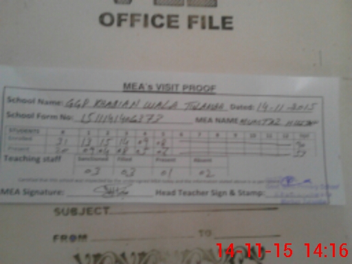 | Attendance Register | Head Teacher | MEA with School | Visit Proof |