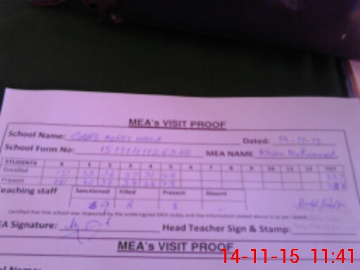 | Attendance Register | Head Teacher | MEA with School | Visit Proof |