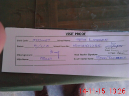 | Attendance Register | Head Teacher | MEA with School | Visit Proof |