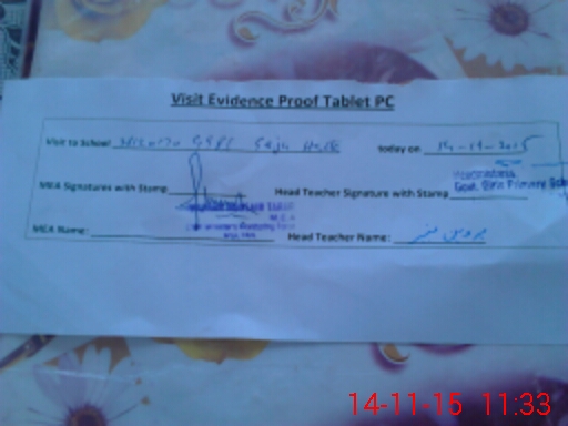 | Attendance Register | Head Teacher | MEA with School | Visit Proof |