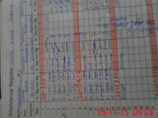 | Monitoring Date: 16-11-2015 | Start Time: 16-11-2015 08:23 AM | End Time: 16-11-2015 10:01 AM | Name of MEA: MU**** AK**** KH**** | |