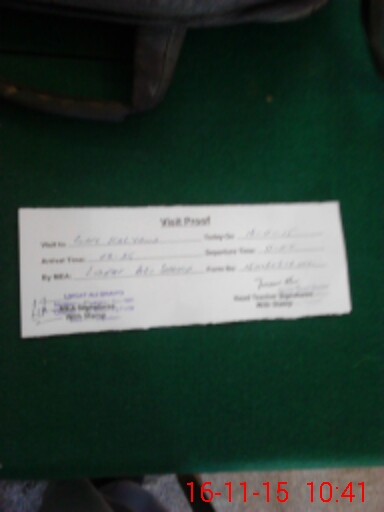 | Monitoring Date: 16-11-2015 | Start Time: 16-11-2015 08:28 AM | End Time: 16-11-2015 10:43 AM | Name of MEA: Li**** Al**** Sh**** (R**** | |