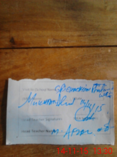 | Attendance Register | Head Teacher | MEA with School | Visit Proof |