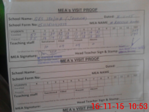 | Attendance Register | Head Teacher | MEA with School | Visit Proof |