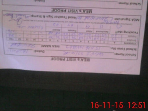 | Attendance Register | Head Teacher | MEA with School | Visit Proof |