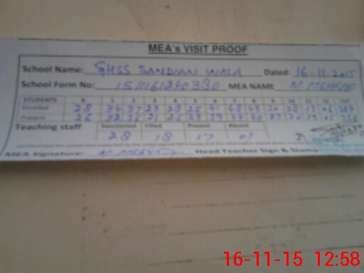 | EMIS Code: 36410015 | Name of School: GHSS SANDIAN WALA, KHANEWAL | |||