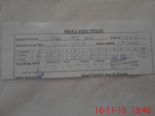 | Certified that this School was Inspected by the Undersigned MEA/DMO Today and the Information Stated Above is as Per Record. | |||||