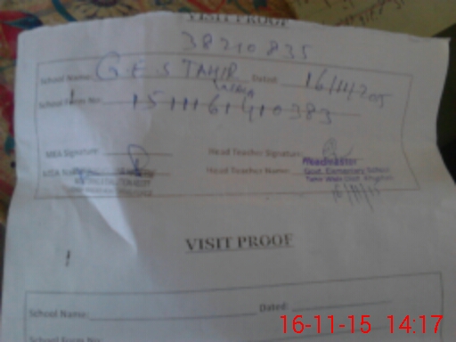 | Attendance Register | Head Teacher | MEA with School | Visit Proof |