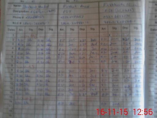| CNIC | Full Name | Designation | R/C | Absence During Last Calender Month |