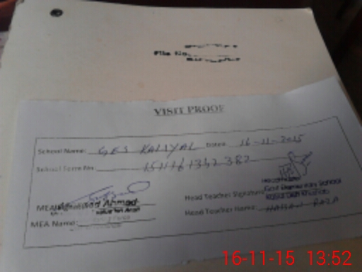 | Attendance Register | Head Teacher | MEA with School | Visit Proof |
