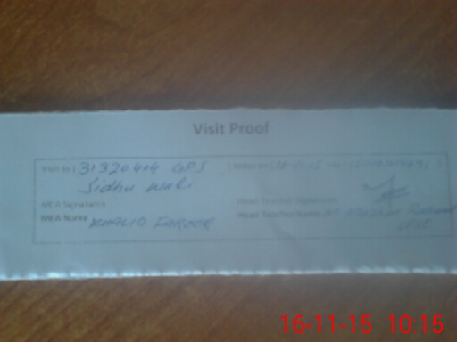 | Attendance Register | Head Teacher | MEA with School | Visit Proof |