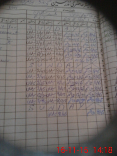 | CNIC | Full Name | Designation | R/C | Absence During Last Calender Month |
