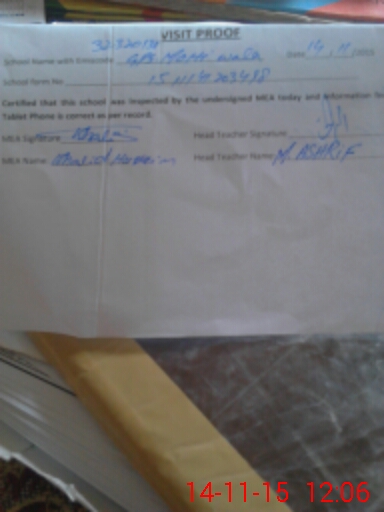 | Attendance Register | Head Teacher | MEA with School | Visit Proof |