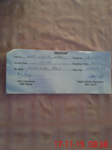 | Monitoring Date: 17-11-2015 | Start Time: 17-11-2015 08:30 AM | End Time: 17-11-2015 09:23 AM | Name of MEA: Mu**** Ra**** | |