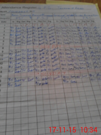 | CNIC | Full Name | Designation | R/C | Absence During Last Calender Month |