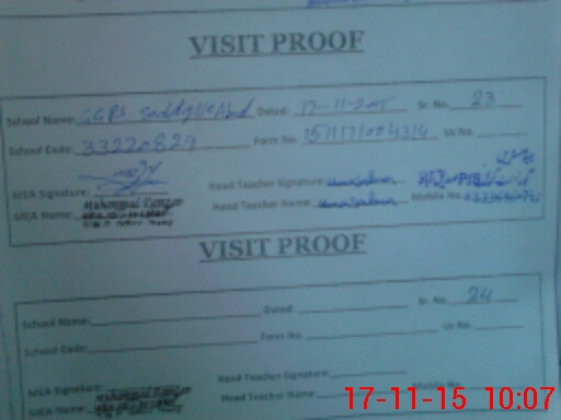| Attendance Register | Head Teacher | MEA with School | Visit Proof |