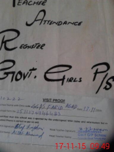 | Attendance Register | Head Teacher | MEA with School | Visit Proof |