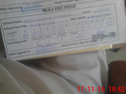 | Attendance Register | Head Teacher | MEA with School | Visit Proof |