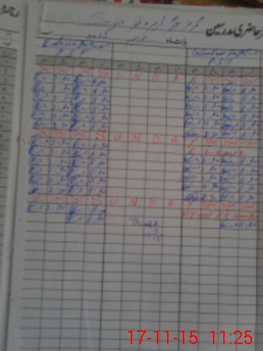 | CNIC | Full Name | Designation | R/C | Absence During Last Calender Month |