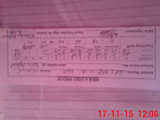 | Attendance Register | Head Teacher | MEA with School | Visit Proof |