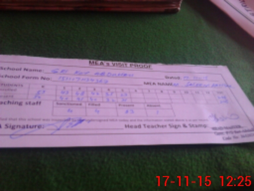 | Attendance Register | Head Teacher | MEA with School | Visit Proof |