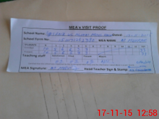 | Attendance Register | Head Teacher | MEA with School | Visit Proof |