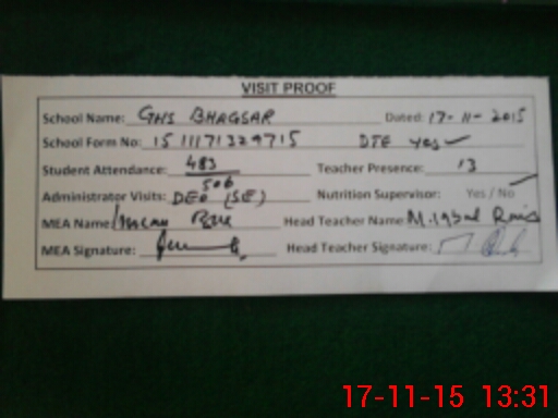 | EMIS Code: 32430012 | Name of School: GHS BHAGSAR | |||