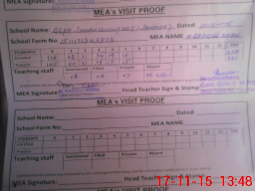| Attendance Register | Head Teacher | MEA with School | Visit Proof |