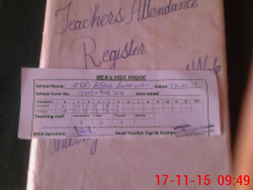 | Attendance Register | Head Teacher | MEA with School | Visit Proof |