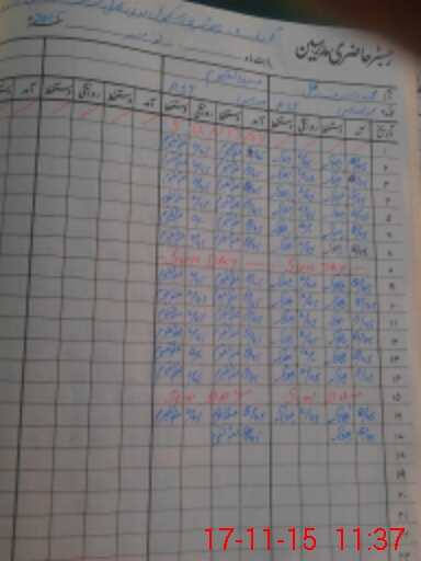 | CNIC | Full Name | Designation | R/C | Absence During Last Calender Month |