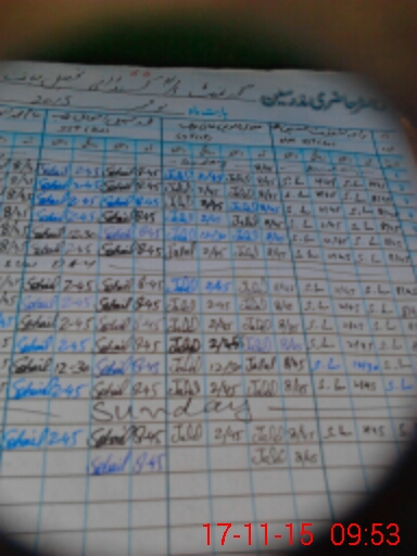 | Monitoring Date: 17-11-2015 | Start Time: 17-11-2015 09:20 AM | End Time: 17-11-2015 10:02 AM | Name of MEA: Mu**** Za**** -LQ**** | |
