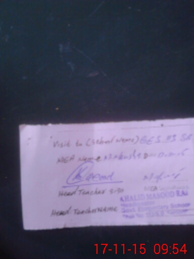 | School Visited by School Health & Nutrition Supervisor (No. of Visits) | 2 | Name1: | TAHIR MAHMOOD | Name2: | |