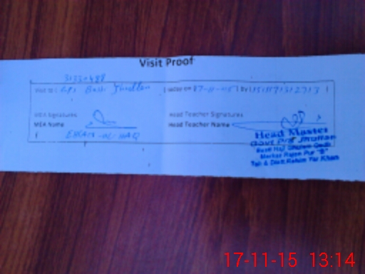 | Attendance Register | Head Teacher | MEA with School | Visit Proof |