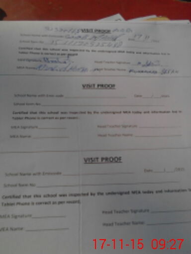 | Attendance Register | Head Teacher | MEA with School | Visit Proof |
