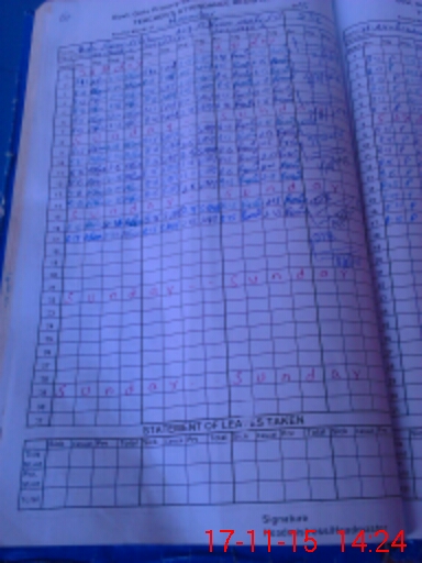 | CNIC | Full Name | Designation | R/C | Absence During Last Calender Month |