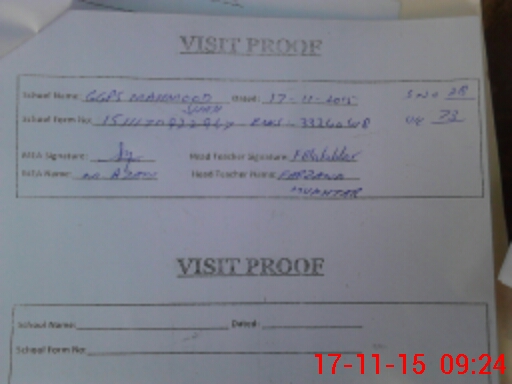 | Attendance Register | Head Teacher | MEA with School | Visit Proof |