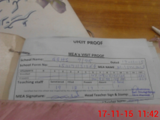 | Attendance Register | Head Teacher | MEA with School | Visit Proof |