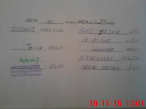 | EMIS Code: 31130013 | Name of School: GHS CHAK 293/HR | |||